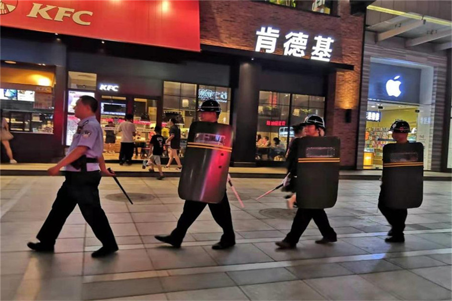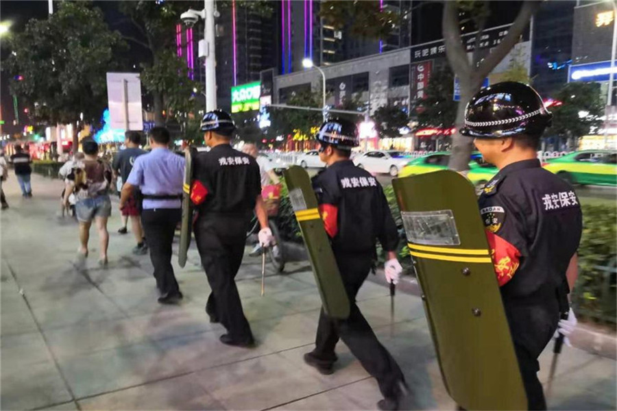 為忠實(shí)踐行“十六字總要求”,進(jìn)一步凝聚警心、鼓舞士氣,激發(fā)斗志、砥礪擔(dān)當(dāng),堅(jiān)決打贏新中國(guó)成立70周年大慶安保維穩(wěn)這場(chǎng)硬仗,“踐行新使命、忠誠(chéng)保大慶”實(shí)踐活動(dòng)實(shí)施, 2019年9月7日由樊城區(qū)漢江派出所民警帶隊(duì),戎安保安公司隊(duì)員分為兩班輪流在中心城區(qū)人員密集場(chǎng)所開(kāi)展義務(wù)巡邏。